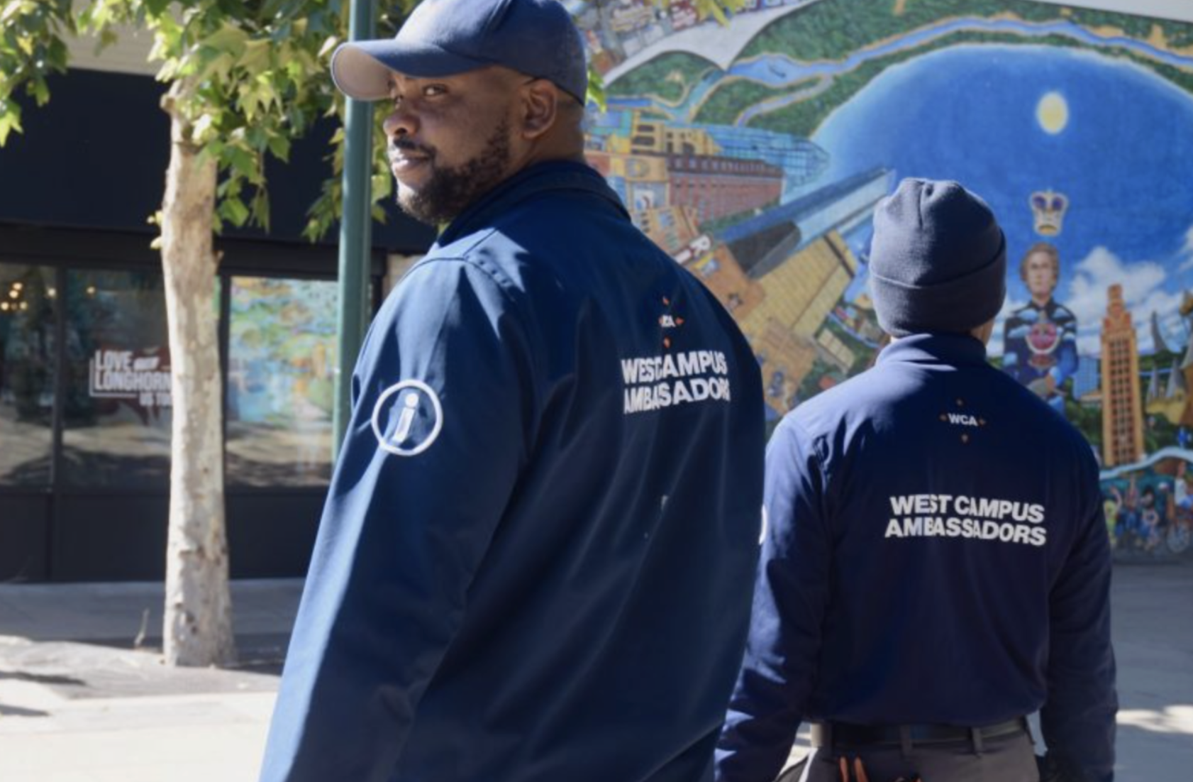 At University of Texas, Austin, Safety Ambassador Team “Keeps West Campus Clean, Safe And Connected.” For Reporting Texas, Samantha Rubin reports on the visible “blue-shirted ambassadors” team, a new safety program funded by U-Texas, that focuses on keeping the West Campus neighborhood safe and clean for students and residents, preserving stretched police resources for serious crimes. The team, available 24 hours a day Thursday through Sunday, and 20 hours a day the rest of the week, is divided into two units: “safety and cleaning,” and “some ambassadors [have] military backgrounds … [but all] are required to go through extensive training.”